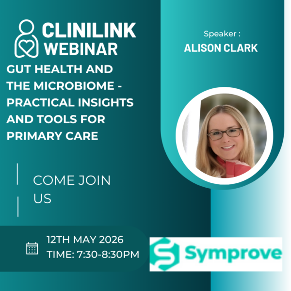 | 19:30-20:00 | Gut Health and the Microbiome - practical insights and tools for primary care Understand the role of the gut microbiome in common conditions (e.g. IBS, antibiotic-associated diarrhoea) and its wider impact on health Apply simple, evidence-based strategies (diet, probiotics, lifestyle) to support gut health in primary care | Alison Clark |