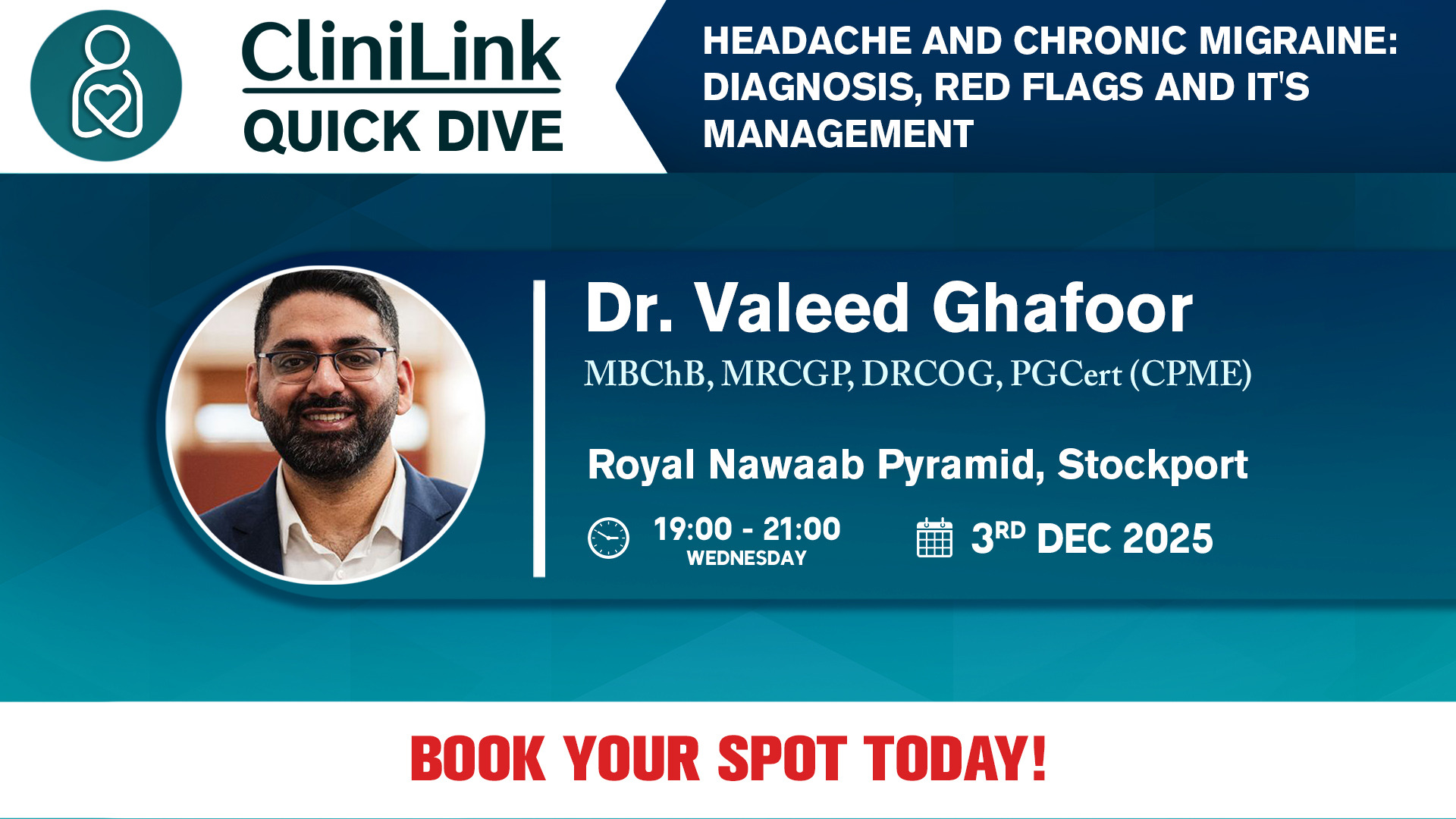 | 20:15-20:45 | Headache Management Pathway and GMMMG guidelines | Dr Valeed Ghafoor |